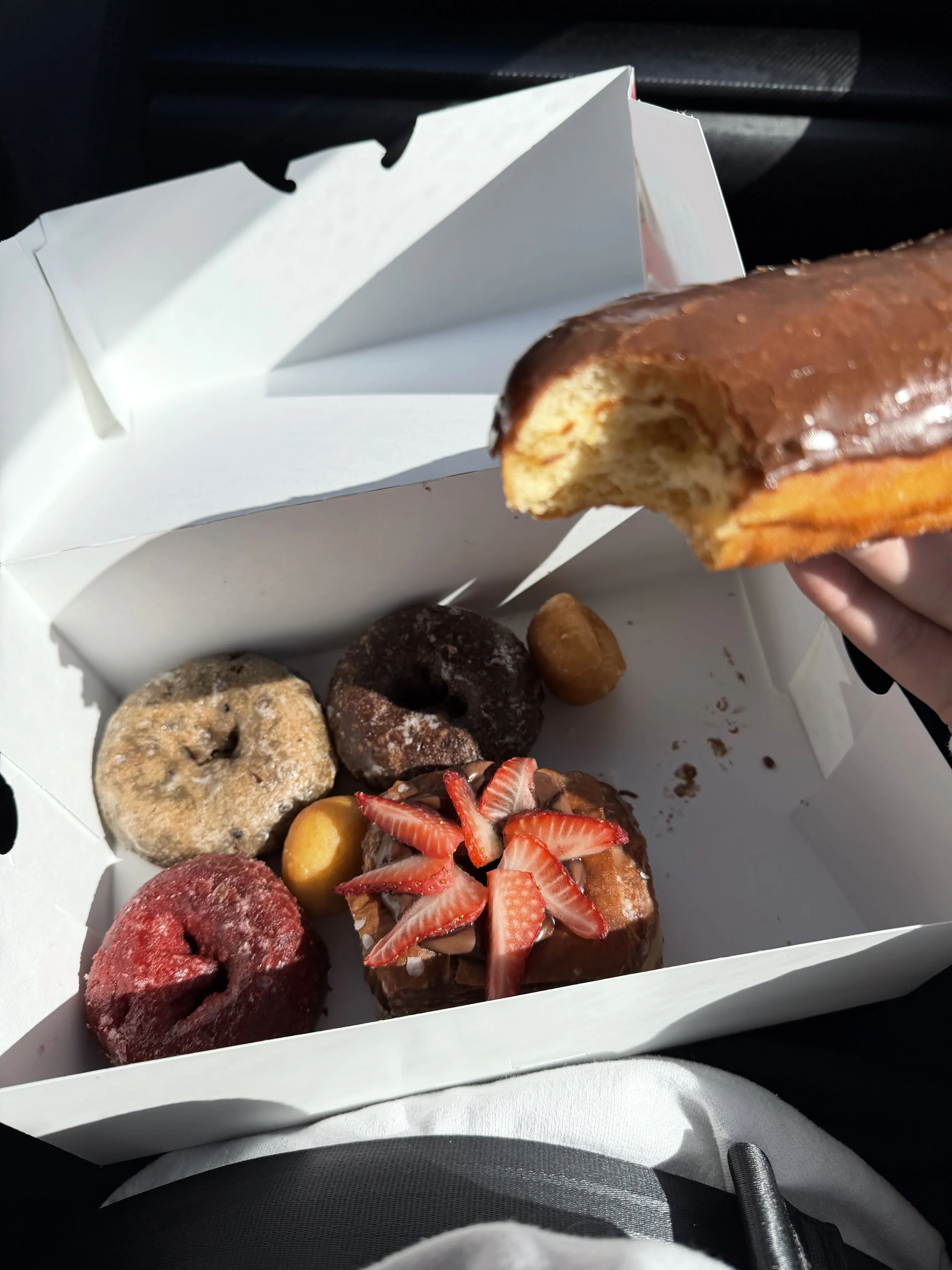 The way we love to go out for a donut or croissant or pastry on Saturday mornings should be studied. This weekend Ryder found OMG Donuts in Arvada through some random review, plus I wanted to go to the Broomfield mall, so we headed that way. When you walk in the owner greets you; we could tell it had been a busy morning with the amount left when we got there! I ordered a custard filled chocolate frosting and he filled it with custard RIGHT THERE. it was amazing. We got 6 donuts in total, some cake donuts, a special croissant donut, it was fun. He also gave us each a little glazed donut hole in the box. It’s in a nice little strip mall with some other things you might need, we had to get gas and it was right there. Then we headed to Broomfield mall, it’s always funny to go to the different malls around the metro because they’re all so different. This one is renovating a lot of spaces right now, with an air of old mall. They have a great Anthropologie which is what I was looking for, and Sephora. I grabbed the Rare Beauty Glimmer lip gloss and and loving it.