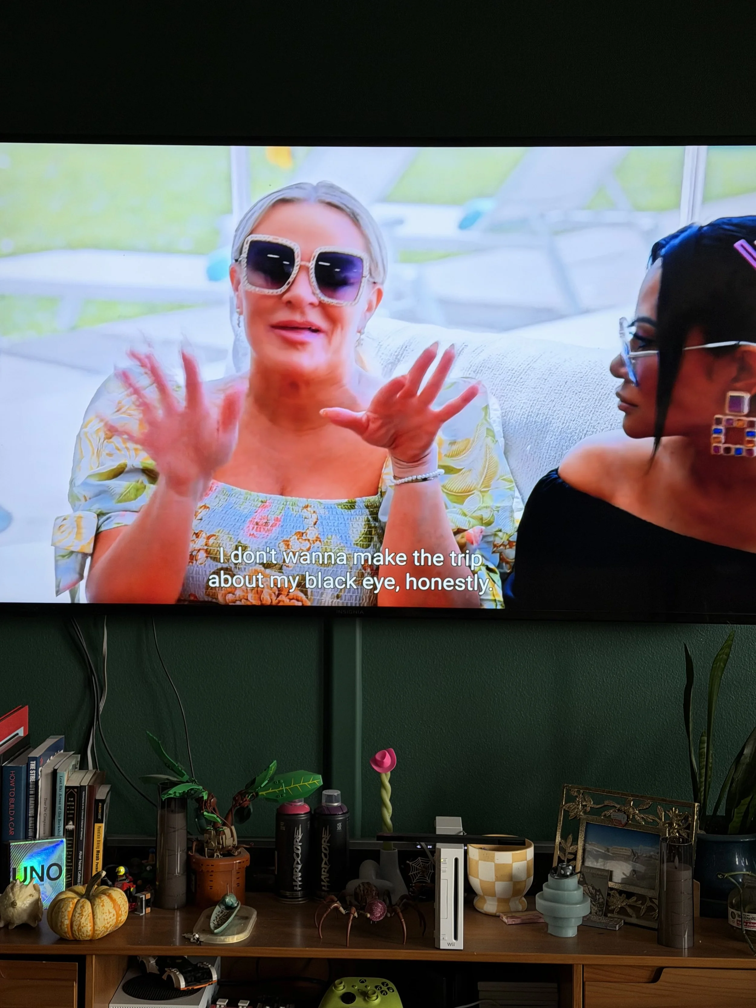 Ooooooo I’m getting near the end of season 3 and the drama!! Angie K and Danna are around for this San Diego trip and I can’t believe Jen poured her drink on Angie💀unhinged drama happening. The dichotomy of having fun, not being a bitch, but being a fun bitch, I’m living for it. — okay so Jen has been charged, Heather got her black eye, WHAT is going on?? I need to know how Heather got that black eye. What the hell is she being so weird about it for? Sus. I can tell they’re bringing the Angies on since Jennie and Mary were gone this season. I don’t like Mary (religious insanity). Idk.