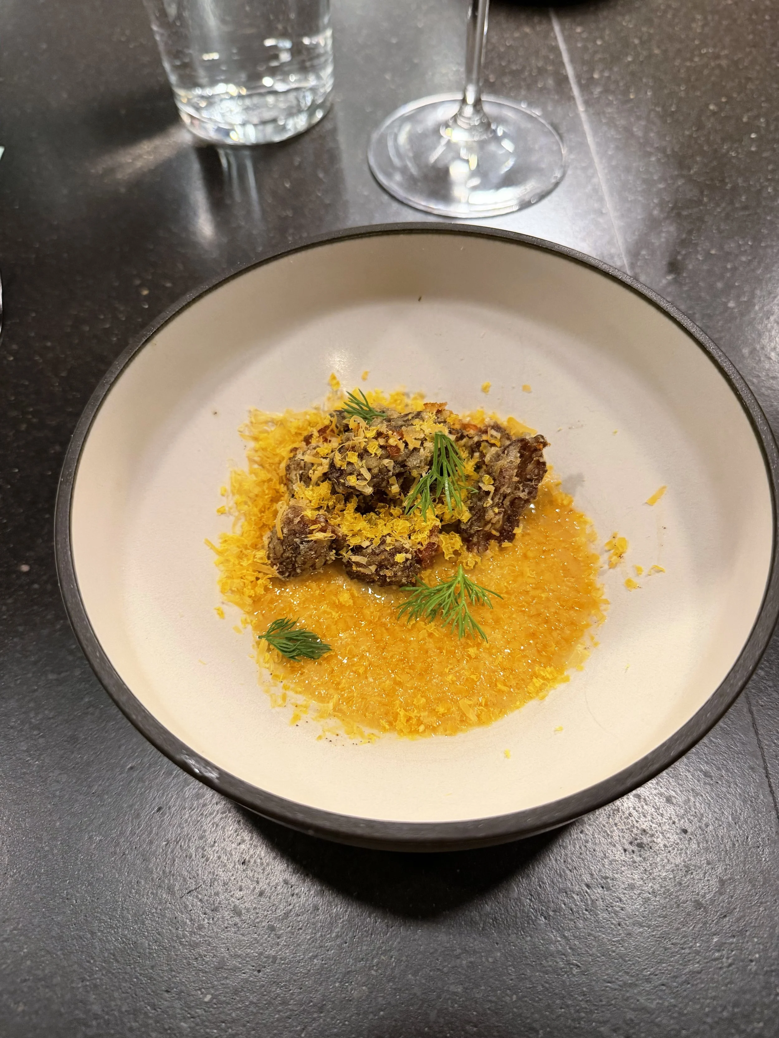 Our friends Ashley and Daniel invited us to go to a 6-seat tasting menu restaurant, Petit Chelou, by Chef Doug Ranklin from LA, held inside Hop Alley. It’s 7-ish courses, with both regular and NA drink pairing options. Wowowow. This dinner blew me away. It was beautiful, elegant, tasty, yet casual and so fun. Chef Doug has been working on Japanese / French fusion cuisine for much of his career, having just moved from LA and running Bar Chelou to Denver working Petit Chelou, hoping to expand. These courses were fab, from a radish starter to raw fish, tempura (the best!) morels, riced fingerling potatoes, the most AMAZING white asparagus, fried quail, and a beautiful hazelnut desert. I got the mocktail pairing which was super fun to experience, since I’m not usually getting anything special on that side. I e had a fabulous time and spent almost three hours there eating, chatting, and learning from the team behind the counter - Chef Doug Fresh, Wine Director at Hop Alley Jacob Roadhouse, and sous chef Becca Balenson. We truly loved this experience wholly, from start to finish. So so so so special. Highly recommend if you can snag a reservation.