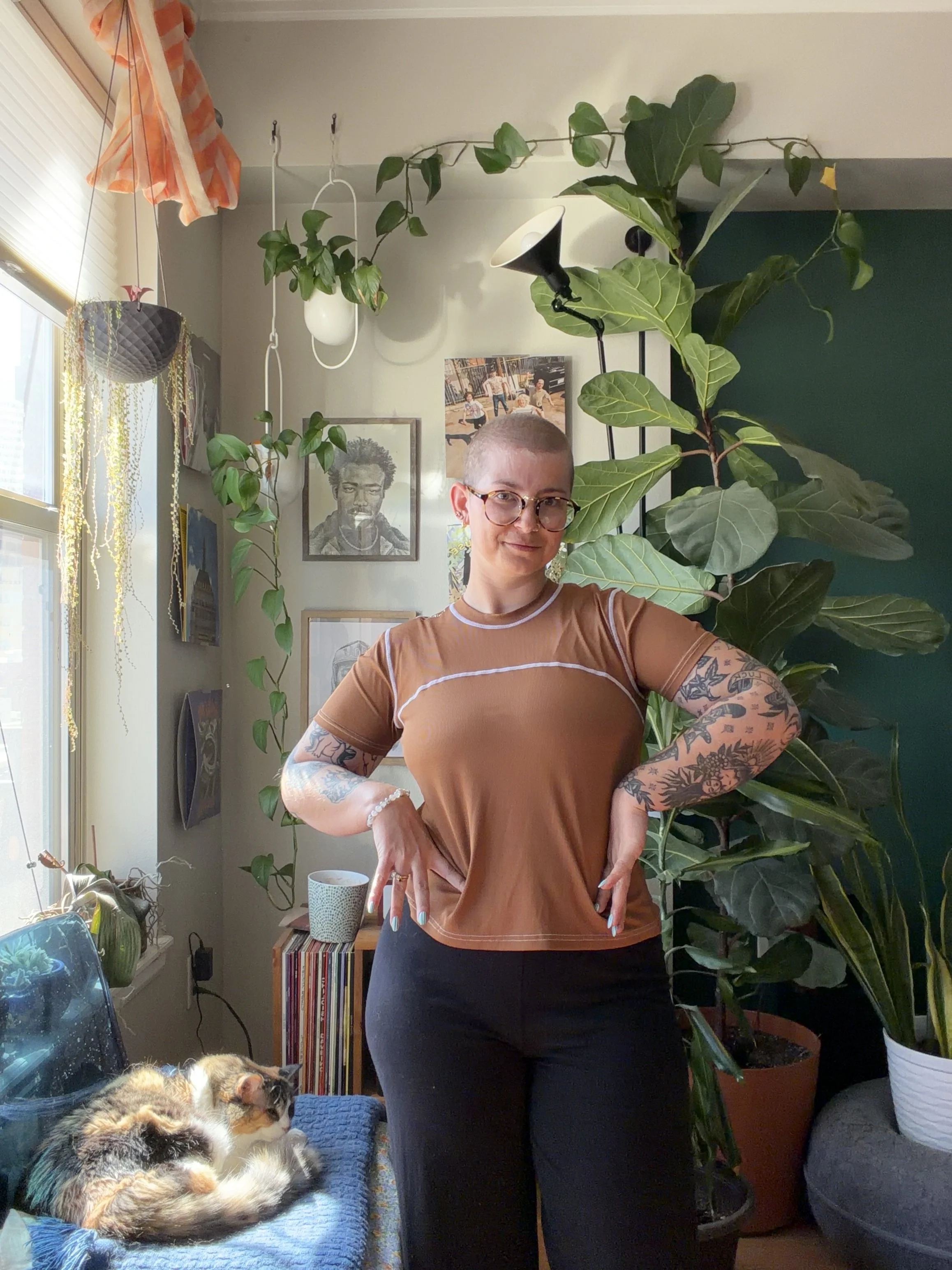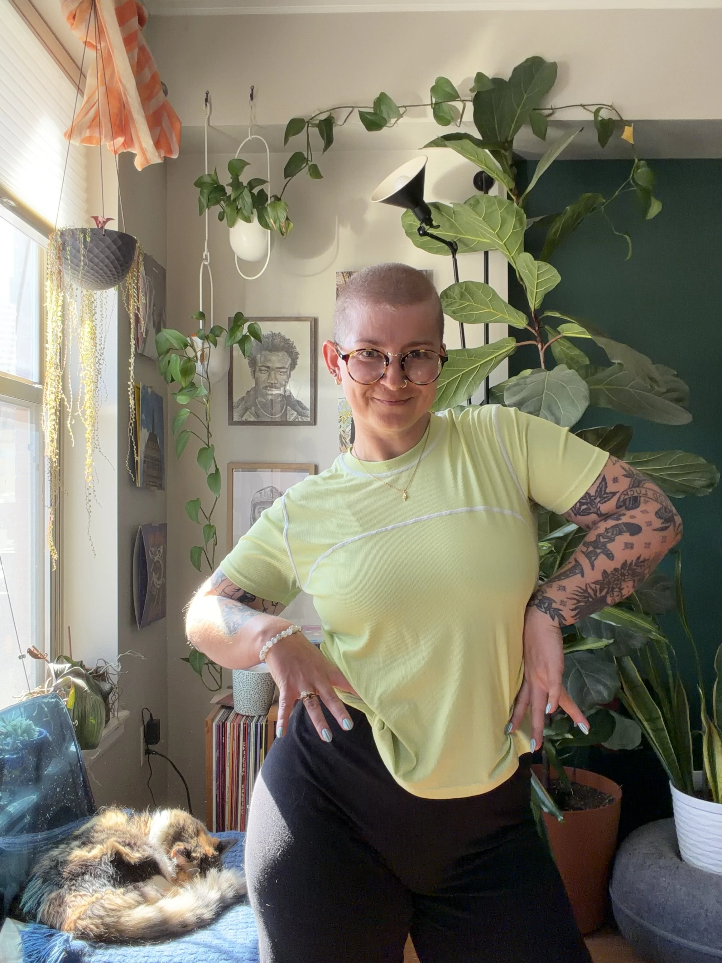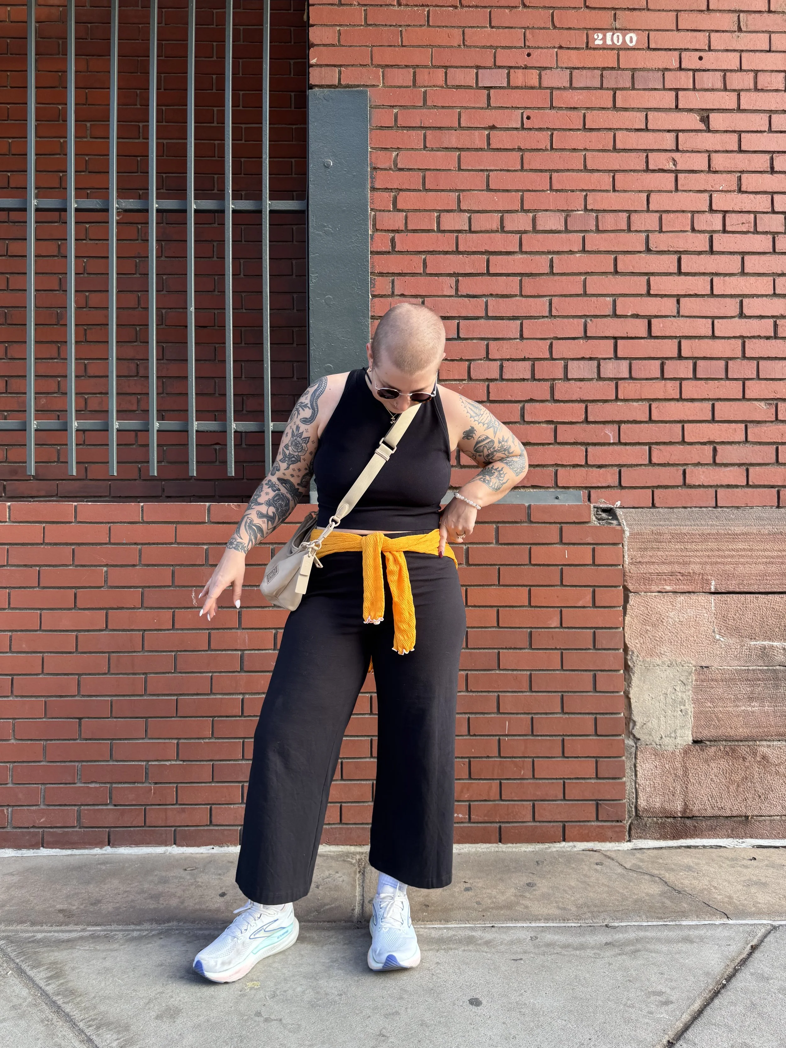 For reference: I am 5’4” and usually 165 lbs. Pants were my comfy and cheap Old Navy (basically gauchos) flare crop leggings.