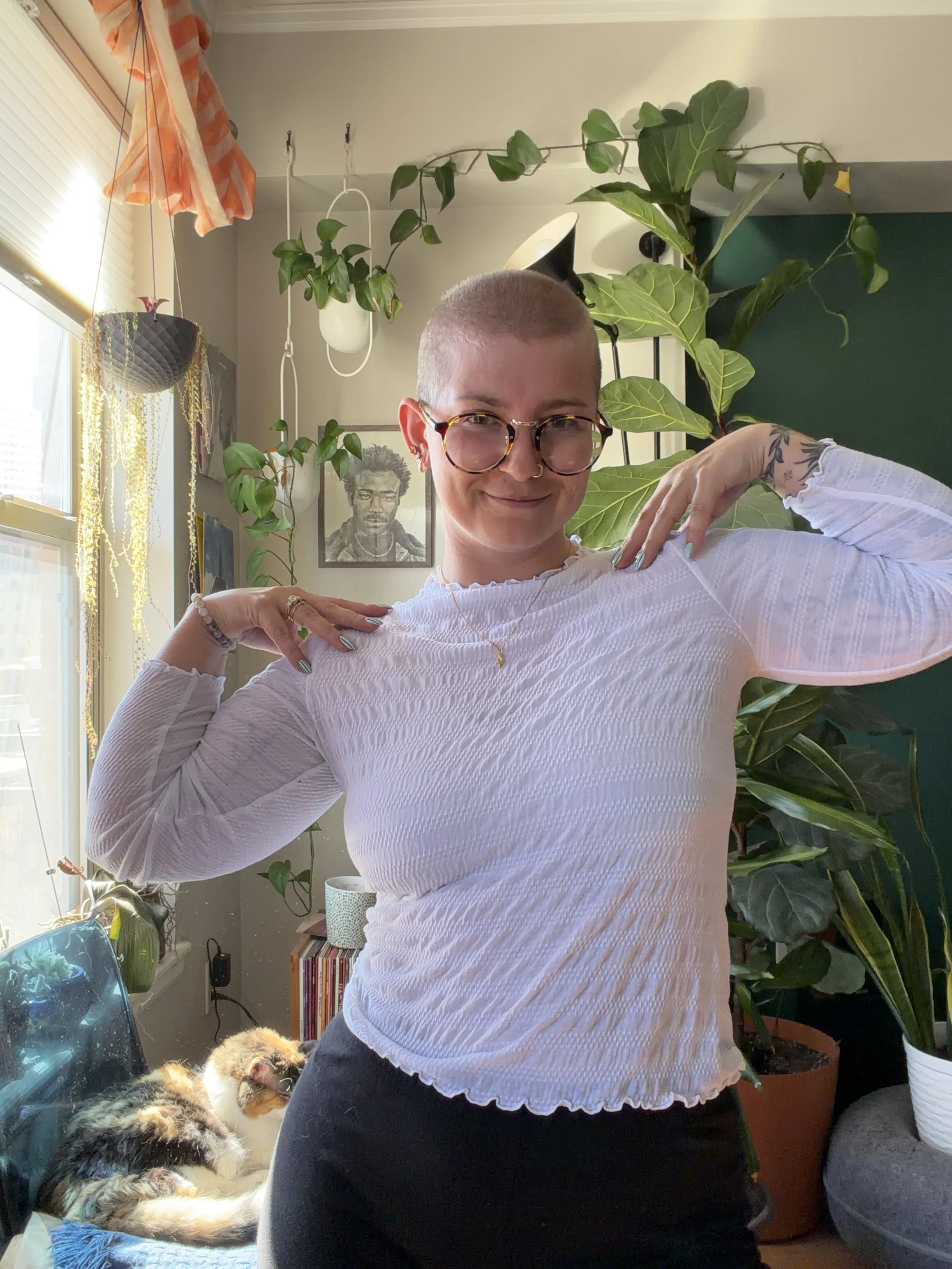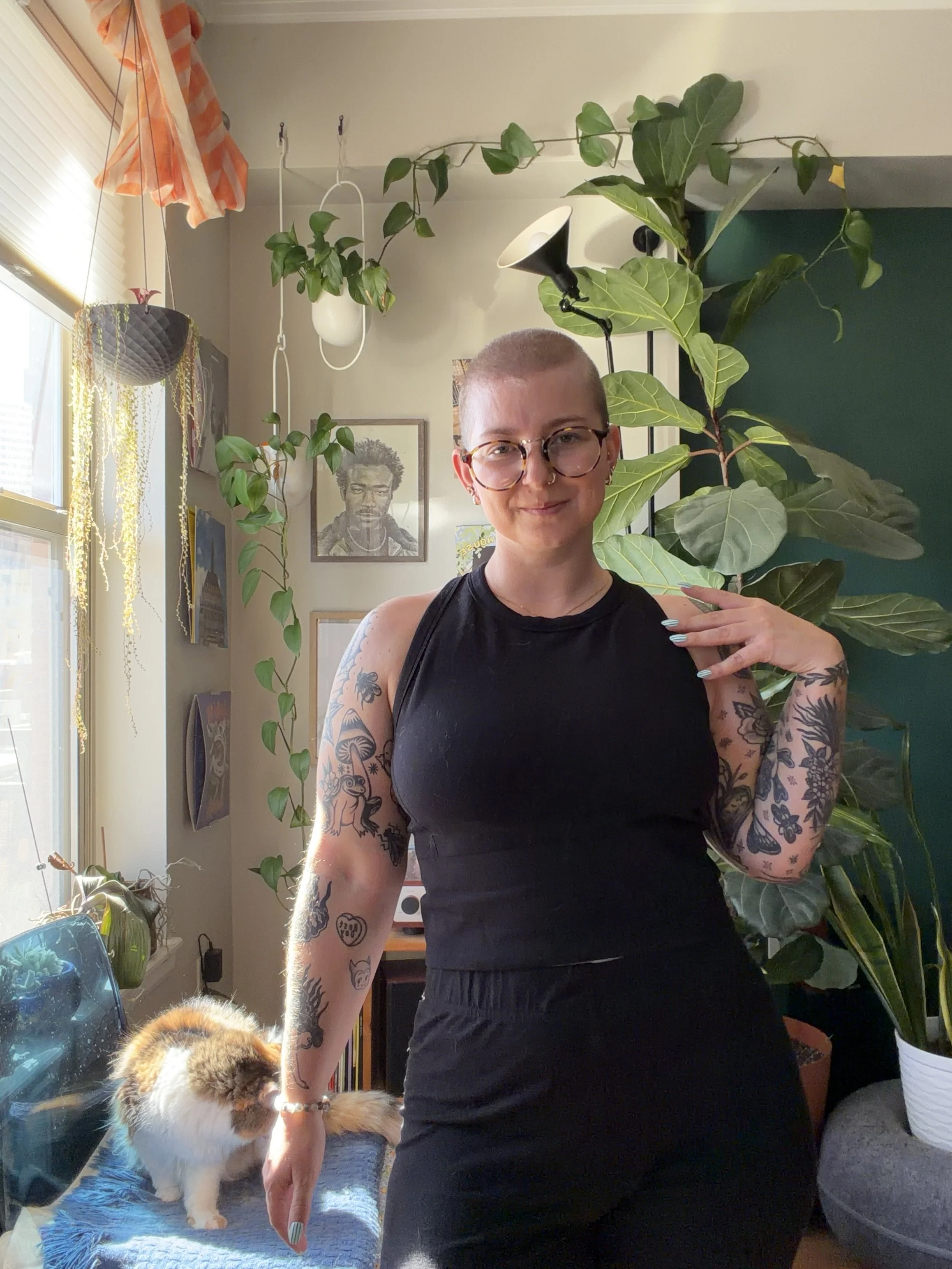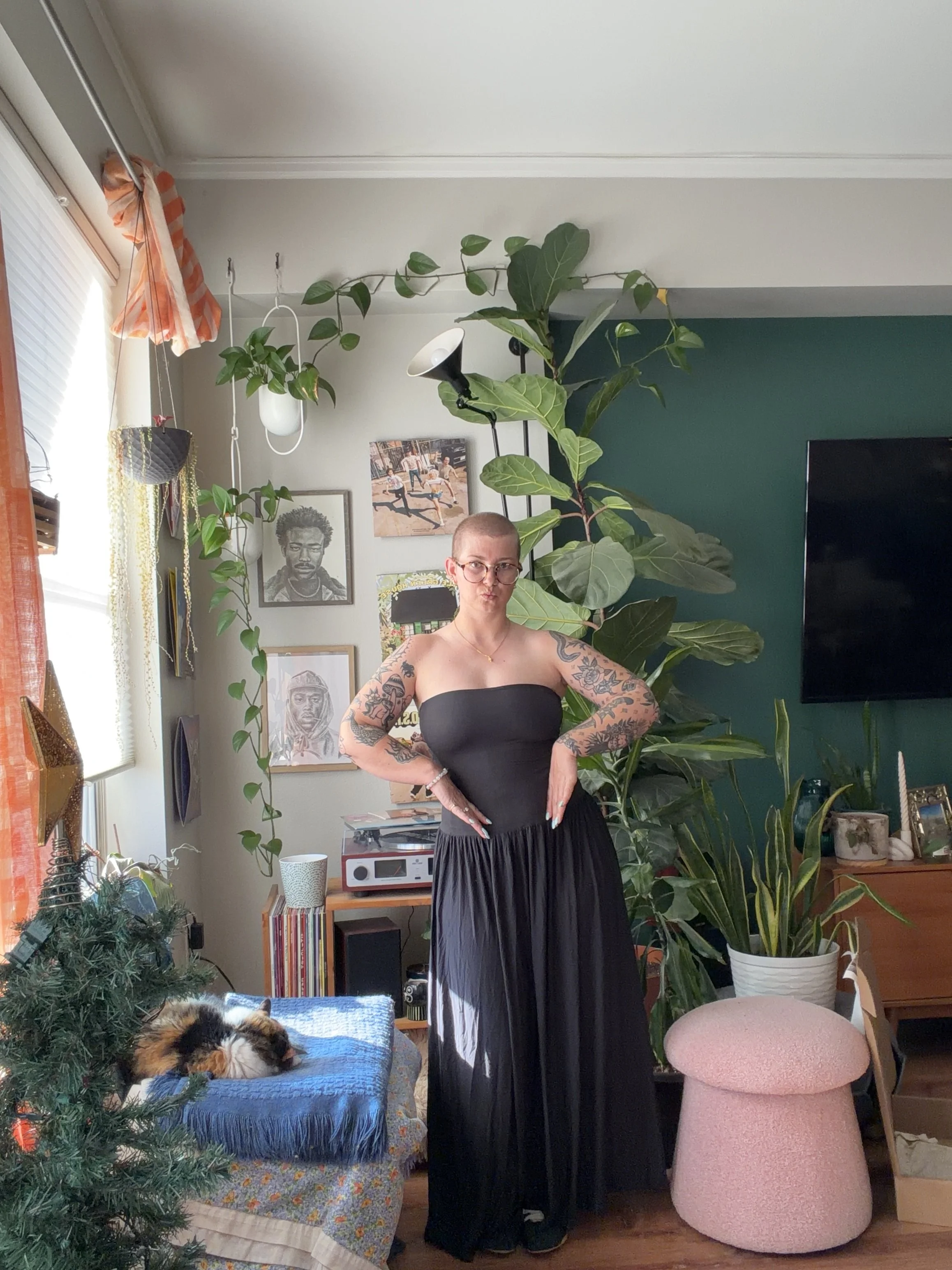 For reference: I am 5’4” and usually 165 lbs. Pants were my comfy and cheap Old Navy (basically gauchos) flare crop leggings.