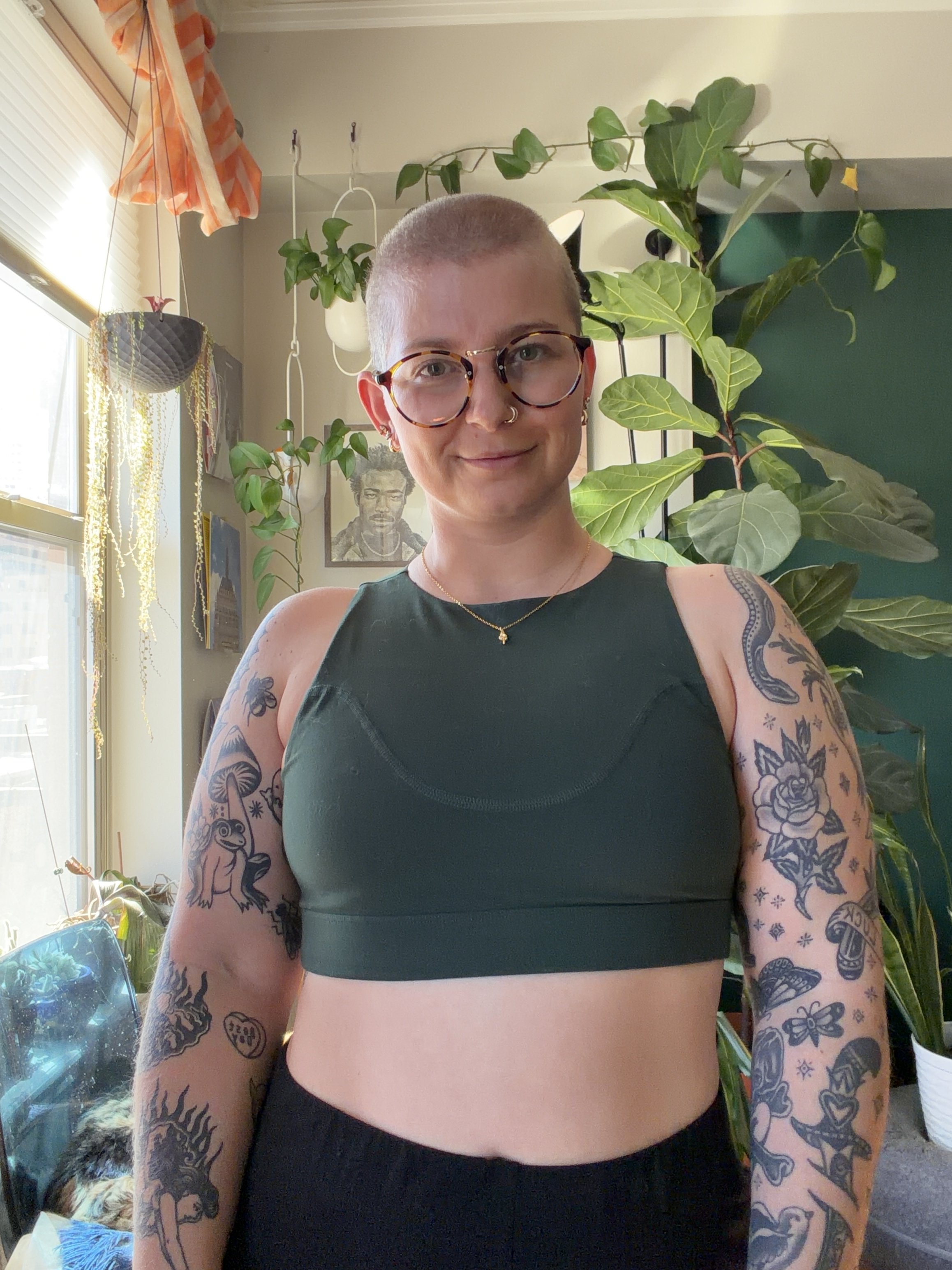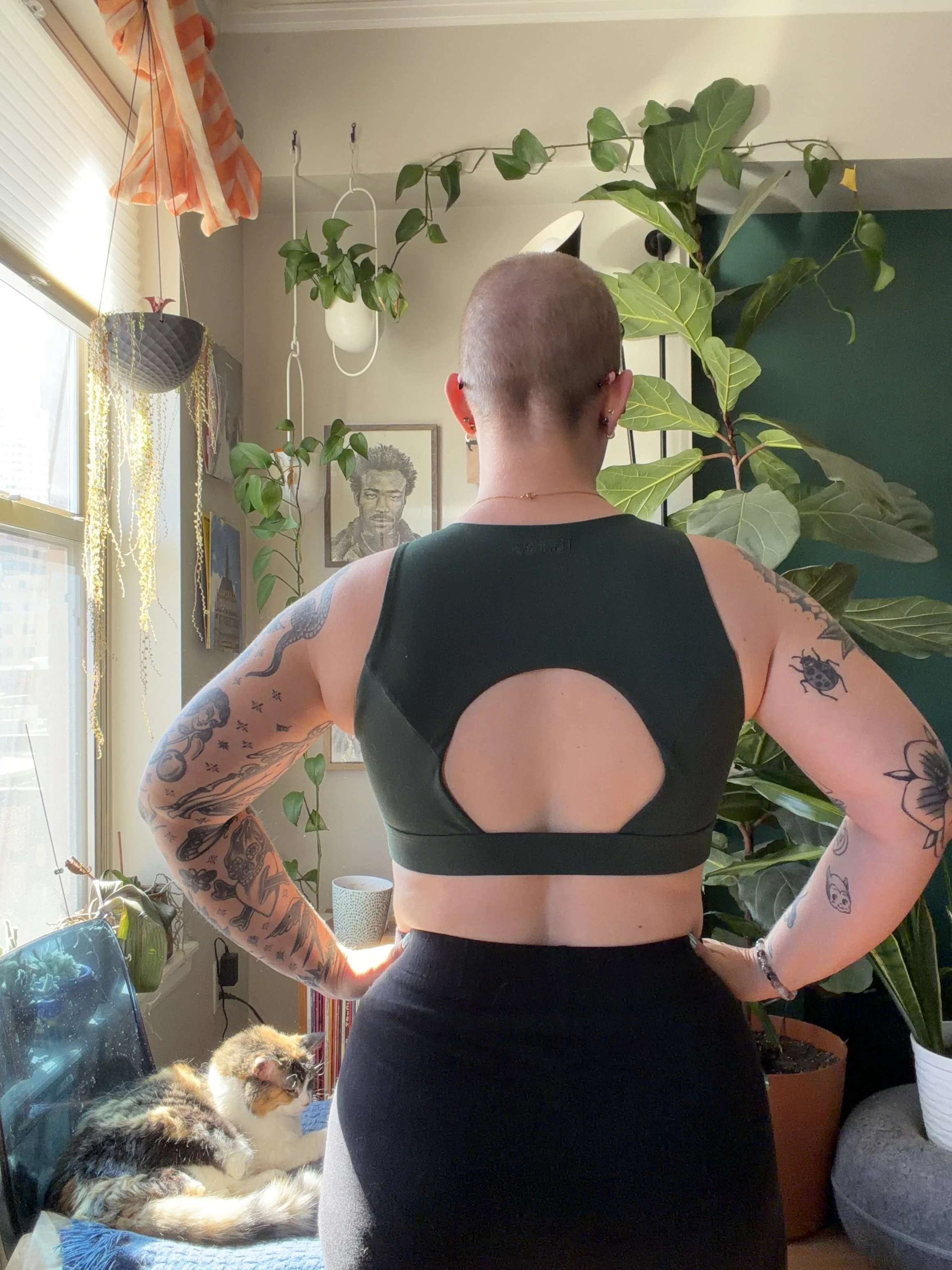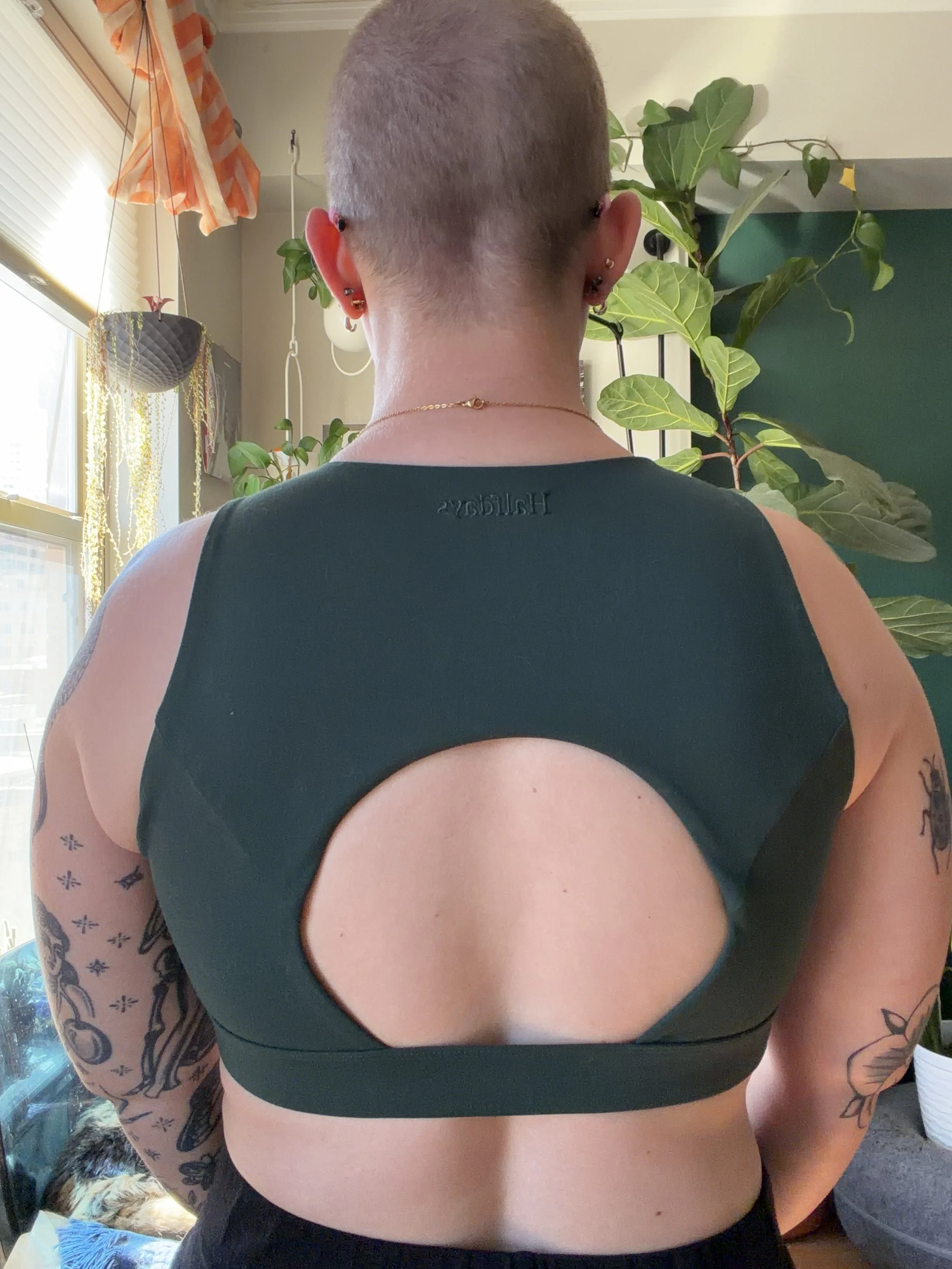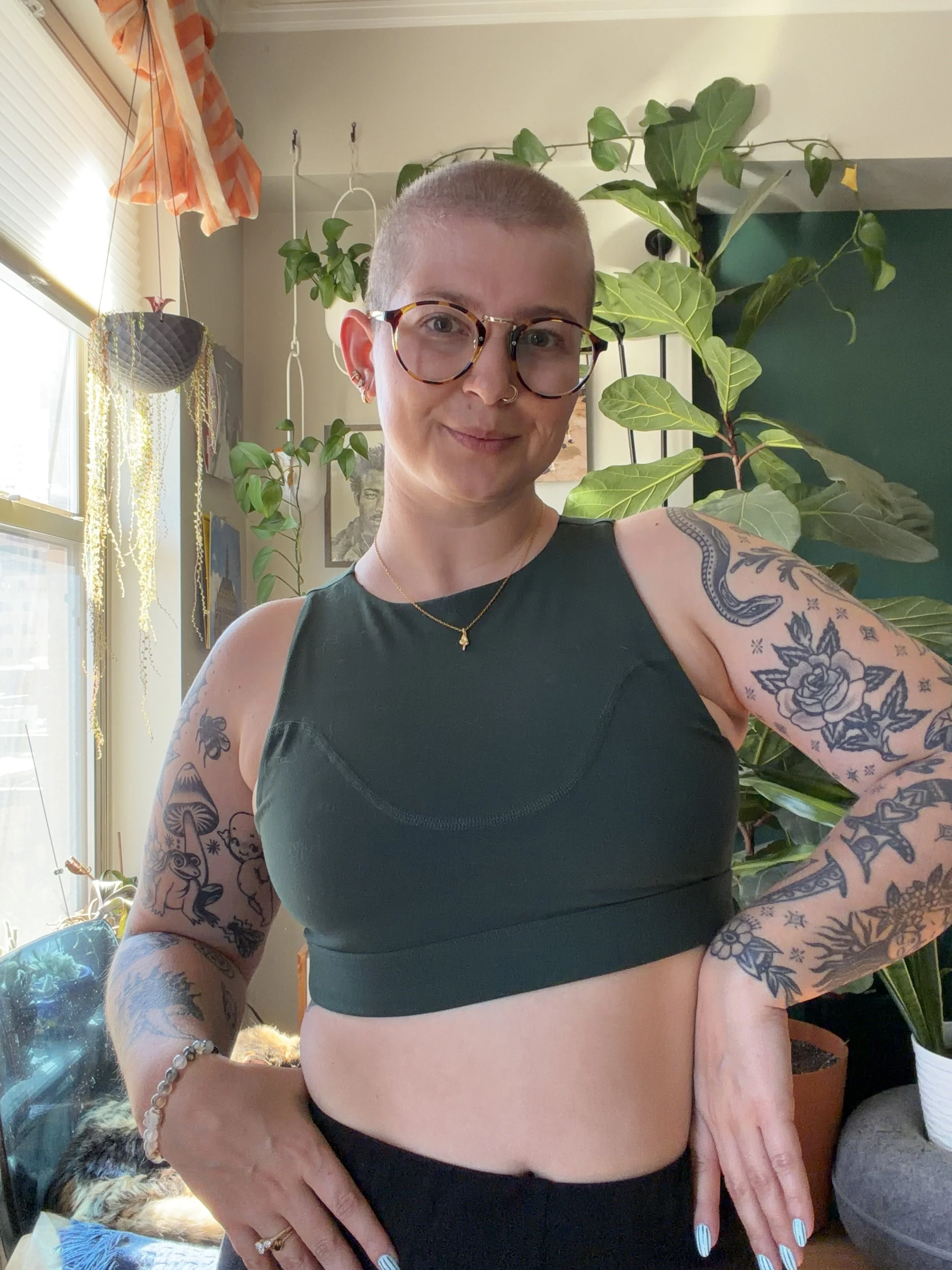 My review: I really like this sports bra! I got it in an XL after trying on the Large and deciding it would be too small. I have a larger chest that can affect the sports bras I like to wear, and this was my first in finding something I liked that fit well. I really like to wear this one to the gym and out for summer hikes! It stays put in a way that I like and it’s sooooo cute with the seams across the front and the keyhole in the back. It’s so soft but the band is strong enough around my chest that I’m not bouncing around. 9/10, only docking because I have felt my boobs inching toward the band so would love more space in the bra with a bit tighter band. But that’s based on my body shape! Overall this is such an amazing sports bra and I love the color.