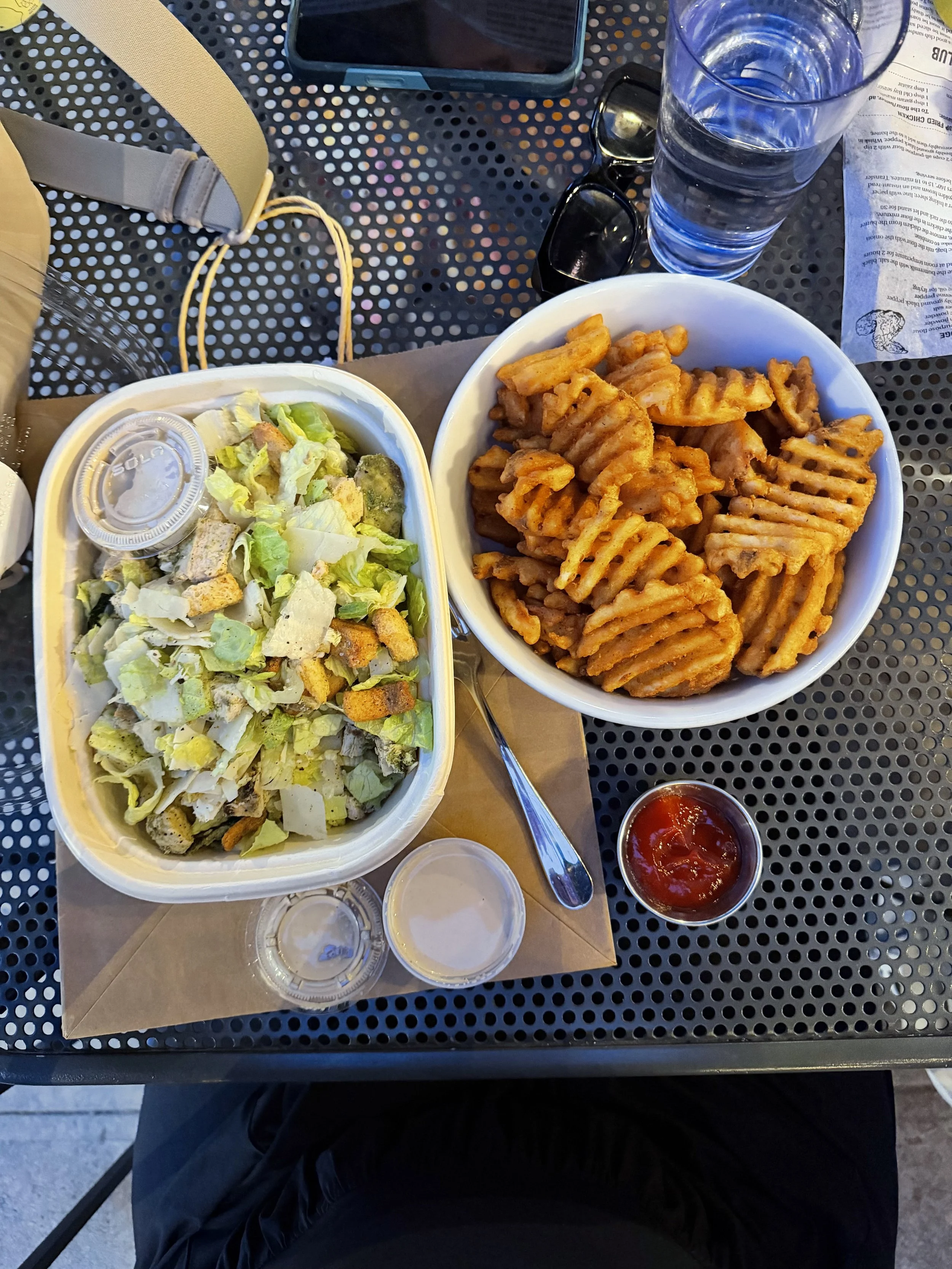 Denver Central Market is really cute and lively on a weekend night and we were feeling it so we went. It’s always always always good people watching if you sit outside, and it’s nice to have so many food options to choose from. I neeeeeeeeded that girl dinner, I needed that Caesar salad and fries, and I GOT IT. Winnie got to try a lemon for the first time and that girl realllllly loved that lemon. Ryder got a pizza, Abbie got fish and chips, and Alex got a couple sushi things. We really had the perfect 86 degree spring day with our besties.