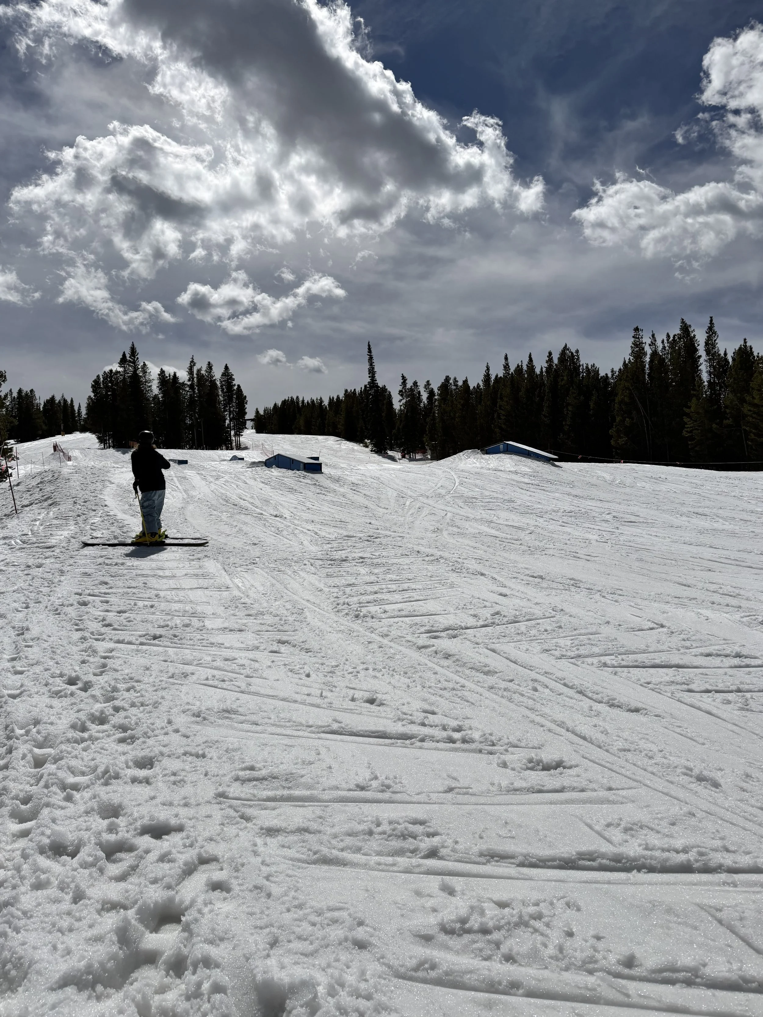 We took Sunday to go to Winter Park and hit some spring skiing. The snow is melting fast with the high temps and we’re seeing closing dates float around, so we’re trying to get out there as long as we can! Our strategy is to park in the G lot, take the bus in, and head over to the Gemini lift. We take that up and cross over to Prospector lift, which takes you above Ash Cat. We ride that down (this is the spot I’ve been working on my backwards riding), and then you’re in Ash Cat, which is the “small” terrain park at Winter Park. They usually have two lines, each with three flat boxes of various types, then one side has a rail and the other has the tube, and then each line has it’s own two jump lines. We usually lap that down and around, Prospector up and down through Ash Cat. This weekend I got to hike up and try the tube a bunch of times, my first times working on it! I’m getting the hang of it but hitting a tube is scary. That’s what I broke my ribs on. But it went great PLUS I’m progressing in the jump line, I accomplished my first full ski grab on a jump! It was so warm, 55 with some wind. I’ve got videos of my tube work on my Insta!