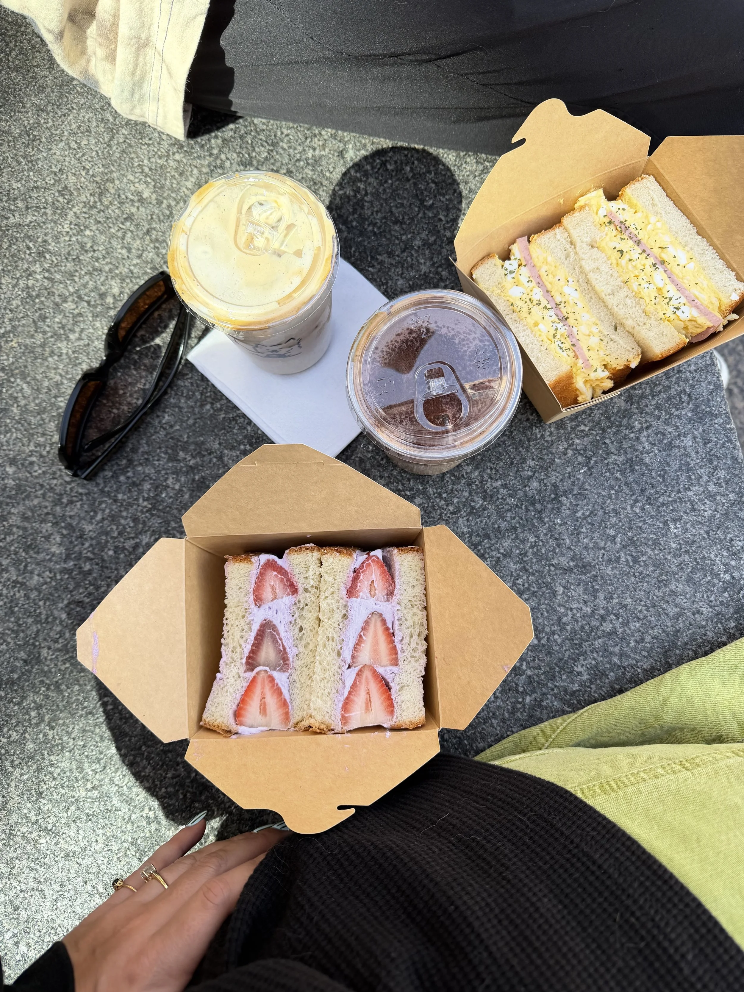 Our friend Claire works at Onto; we’ve been meaning to stop by and finally made it for breakfast. She recommended the black sesame latte and the Vienna coffee so we got those, as well as an egg salad spam sando and an ube strawberry sando. Such a fun and good time!! The food and drinks were great and loved the ambience. The design and characters and everything are so cute. Big recommend! Fab service and parking available.